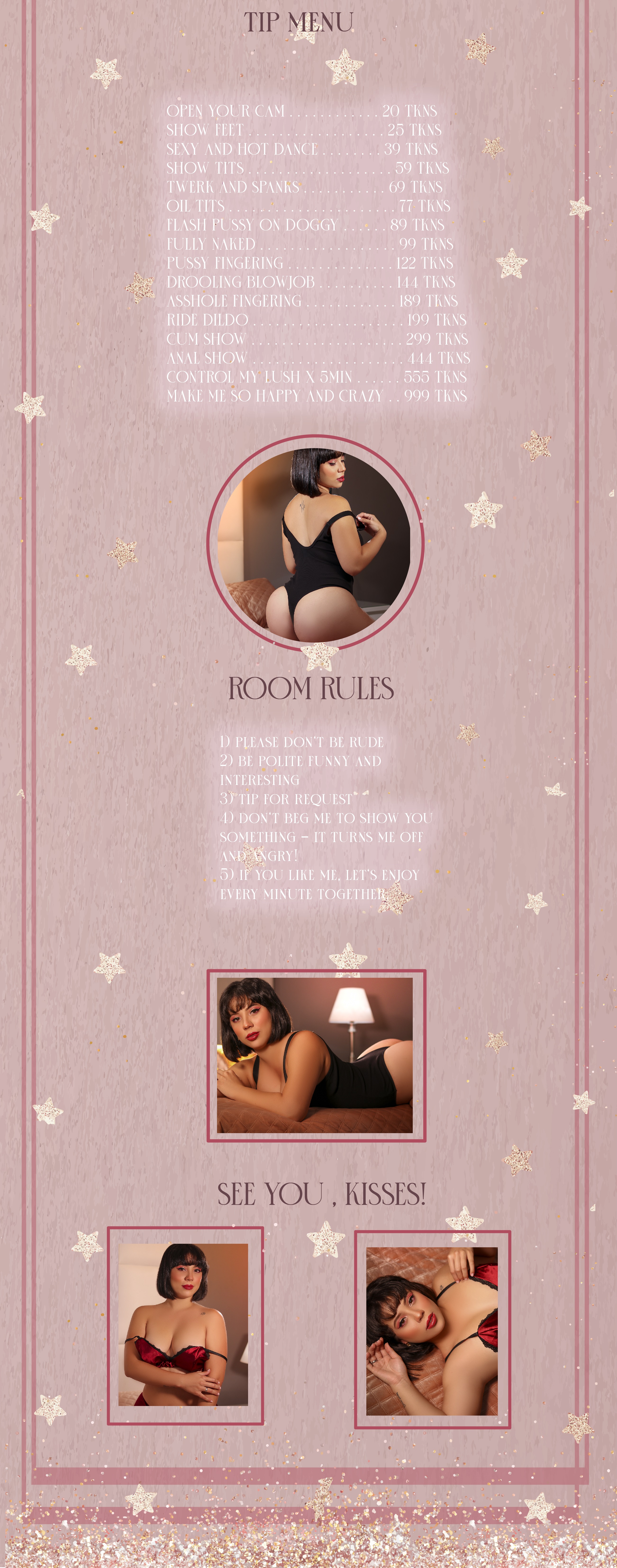 Düğmeye tıklayarak, KattyClarck 'nı ana sayfadaki ilk konuma 60 saniye yükseltebilirsiniz. Bu süre zarfında modelin sohbet odası çok daha görünür ve inanılmaz derecede popüler olacak! Eyleminizle ilgili bir bildirim sohbette görünecek ve modelde görünecek ve diğer sohbet kullanıcıları görüntülenecektir. KattyClarck, bu jesti takdir ettiğinizden ve size karşı ölçülemeyeceğinden emin olabilirsiniz!