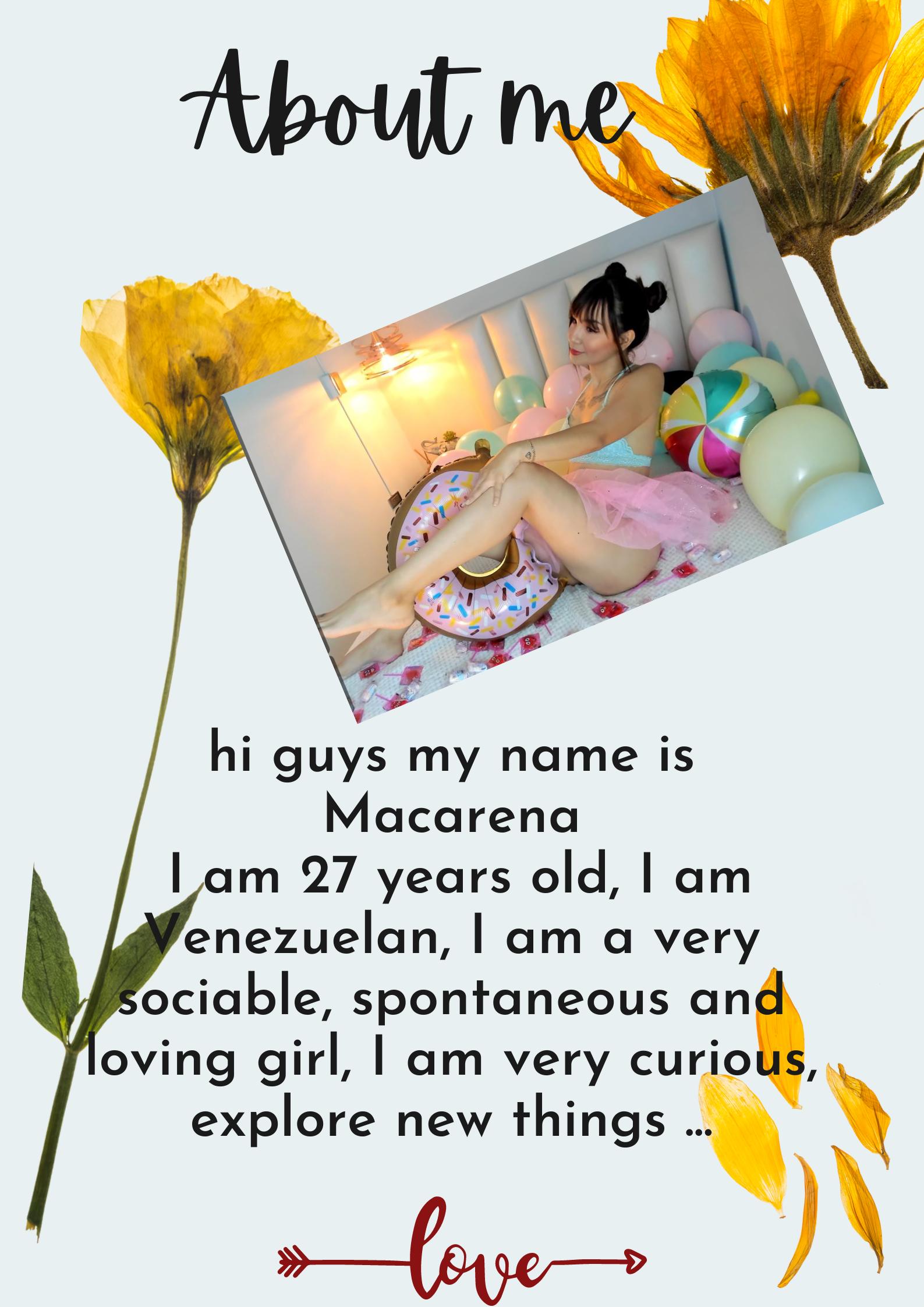 Hello Welcome to my room I am Macarena i am very sociable spontaneous
